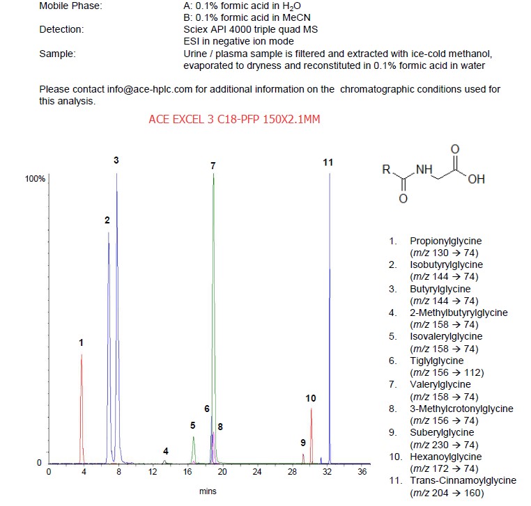 此為在C18中嵌入酰胺基團的特色固定相,可以利用酰胺鍵增強大極性化合物的保留,比如: