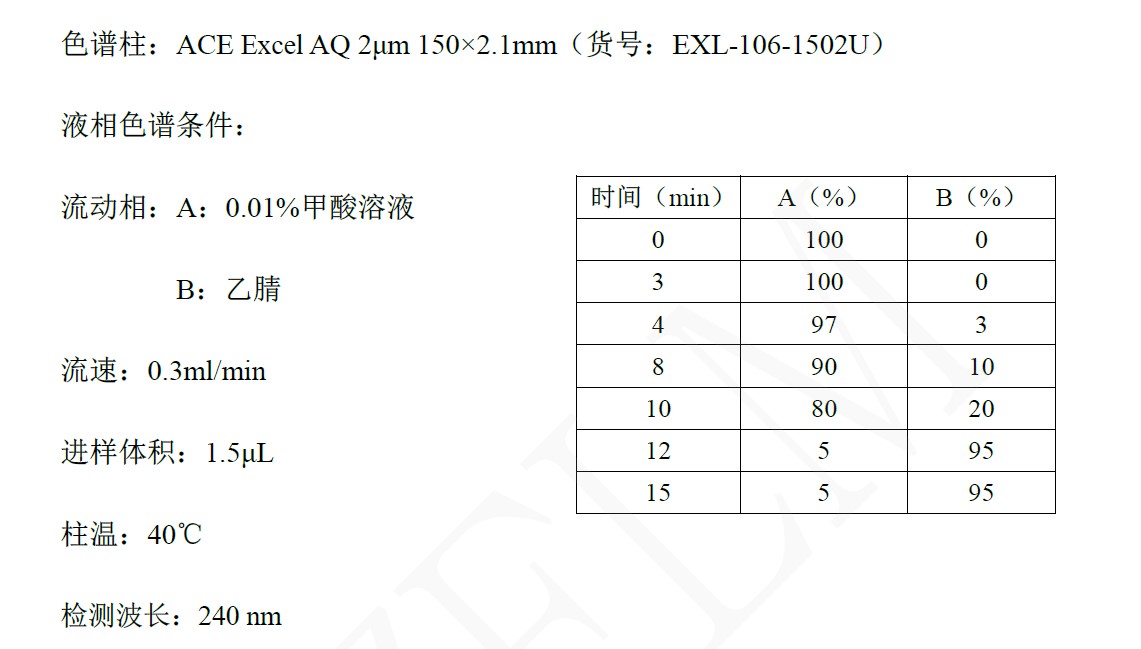 此為ACE特有的EBT技術(封裝鍵合技術),最大程度地消除殘留硅醇基的影響,特別適合維持堿性化合物的優異色譜峰形,同時可以耐受1.5-11.5的寬pH范圍。比如: