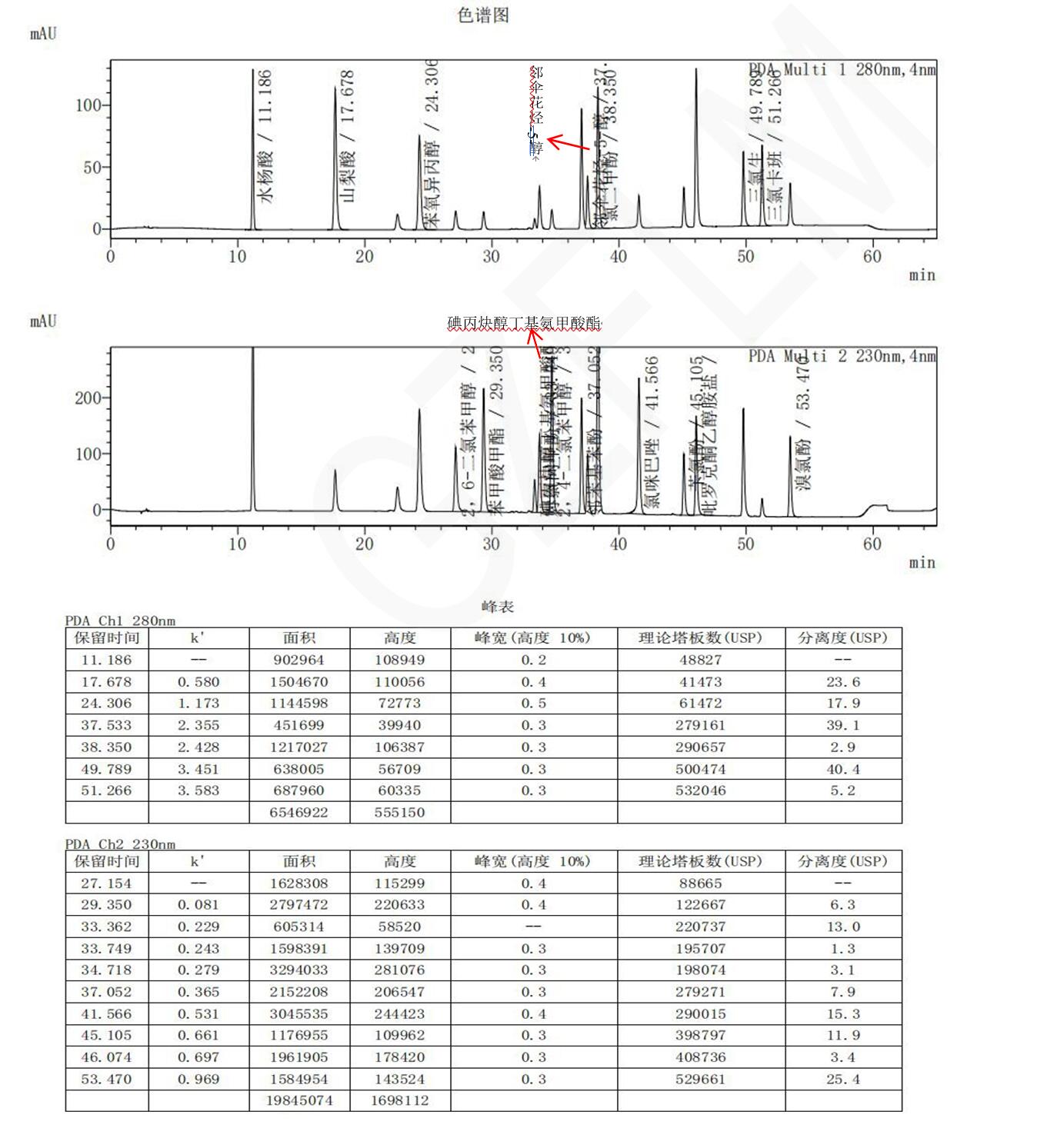 檢測波長:280 nm;230 nm