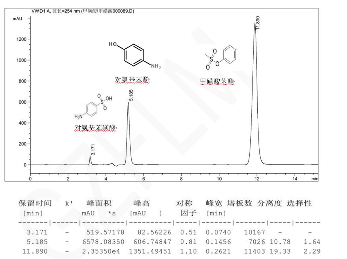 Comixsil ACRP 混合模式分離對(duì)氨基苯磺酸、對(duì)氨基苯酚與甲磺酸苯酯