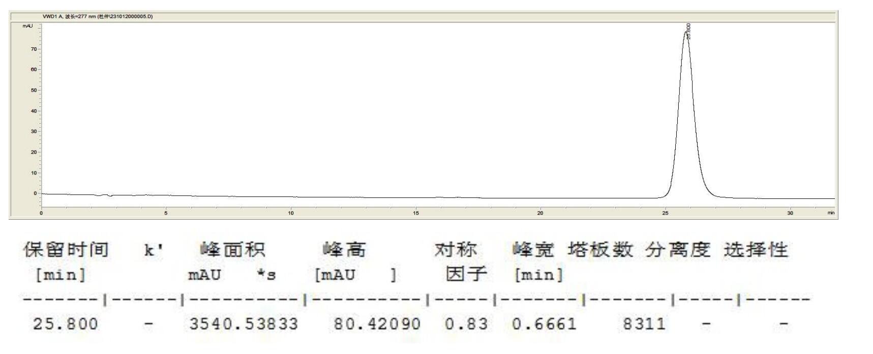 檢測器:UV 277nm