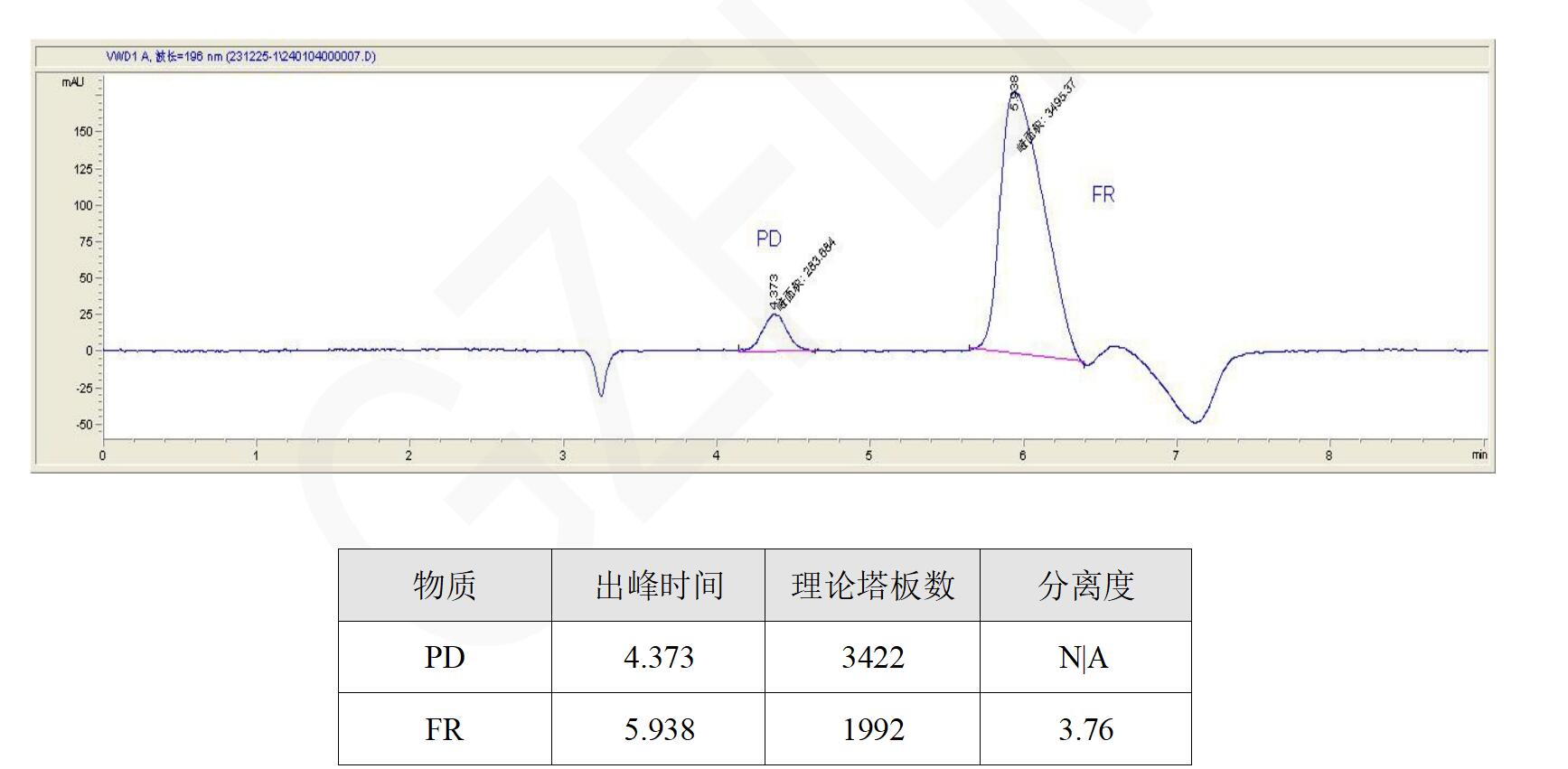 檢測波長:196 nm