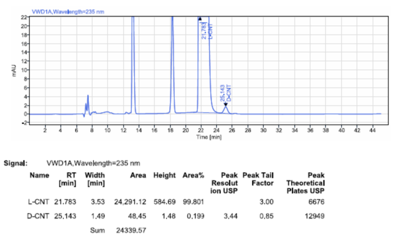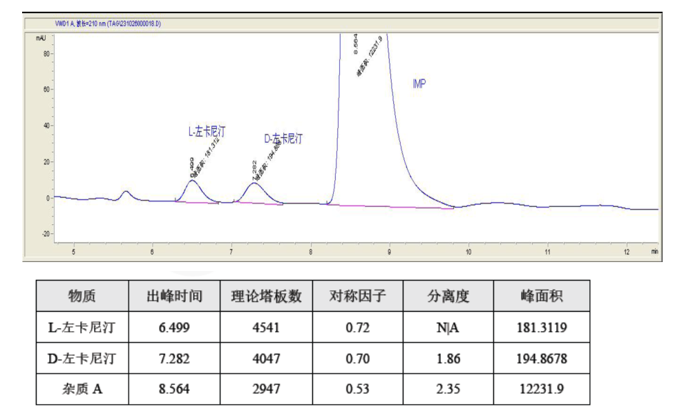 方法三:左卡尼汀的對(duì)映異構(gòu)體USP手性分析方法