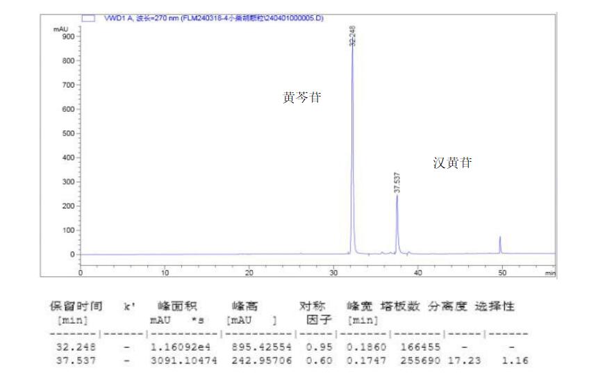 小柴胡顆粒中黃芩提取物的檢測主要包括有效成分含量測定和質(zhì)量控制指標(biāo)的考察兩個(gè)方面。