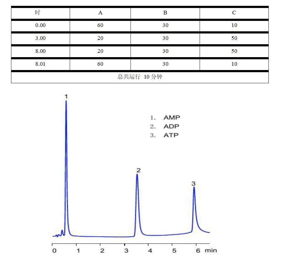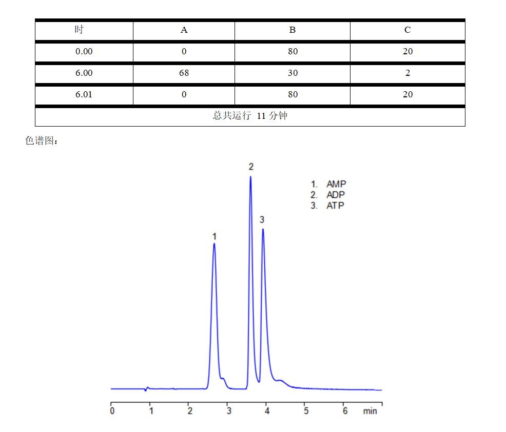 Comixsil HCS 與 HAX 關(guān)于 AMP ADP ATP 的 HPLC 分析研究 App ID: FLM-C240010 色譜柱:Comixsil HCS 3u 100*3.0mm (貨號: FMD-HCS3-YONU) 流速:0.6 mL/min 檢測波 :275nm 流動相:A:水 B:乙腈 C:200mM 乙酸 (pH5.5)