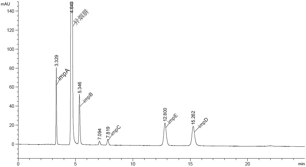 樣品:異煙肼濃度約 500μg/mL,其它雜質濃度約 25μg/mL.